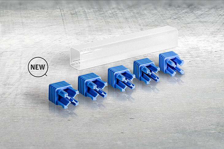 在包装带柄刀具时,用户友好性和最优加持性能是至关重要的。对角定位的夹紧边条只有在透明保护套筒插入并折入适当位置后才紧固压在轴上。另一个优点是:铣刀的敏感切削刃可以在无直接接触的情况下充分得到保护。与此同时,无论是在制造商的装配过程中,以及在用户的后续使用过程中,锋利刀刃造成伤害的风险都得大大降低:如果拆卸了保护套管,则底座插头的夹持力便得以释放,此时工具可以很容易的取出。